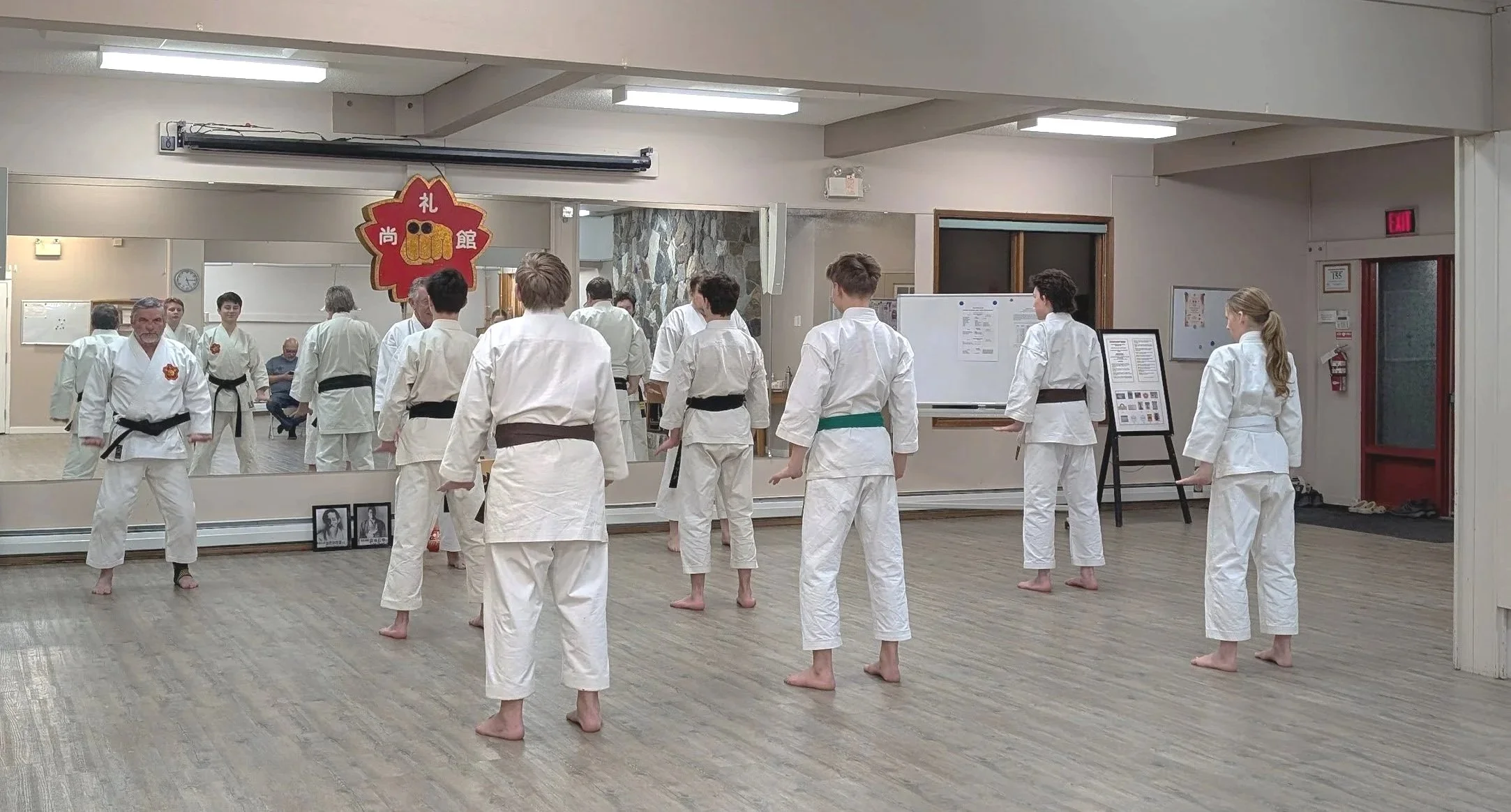 Students learn increasingly complex series of movements called “kata” as well as techniques such as punching, kicking and blocking, and as they advance, they begin weapons training. Self-defence techniques are also incorporated into classes.